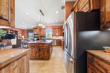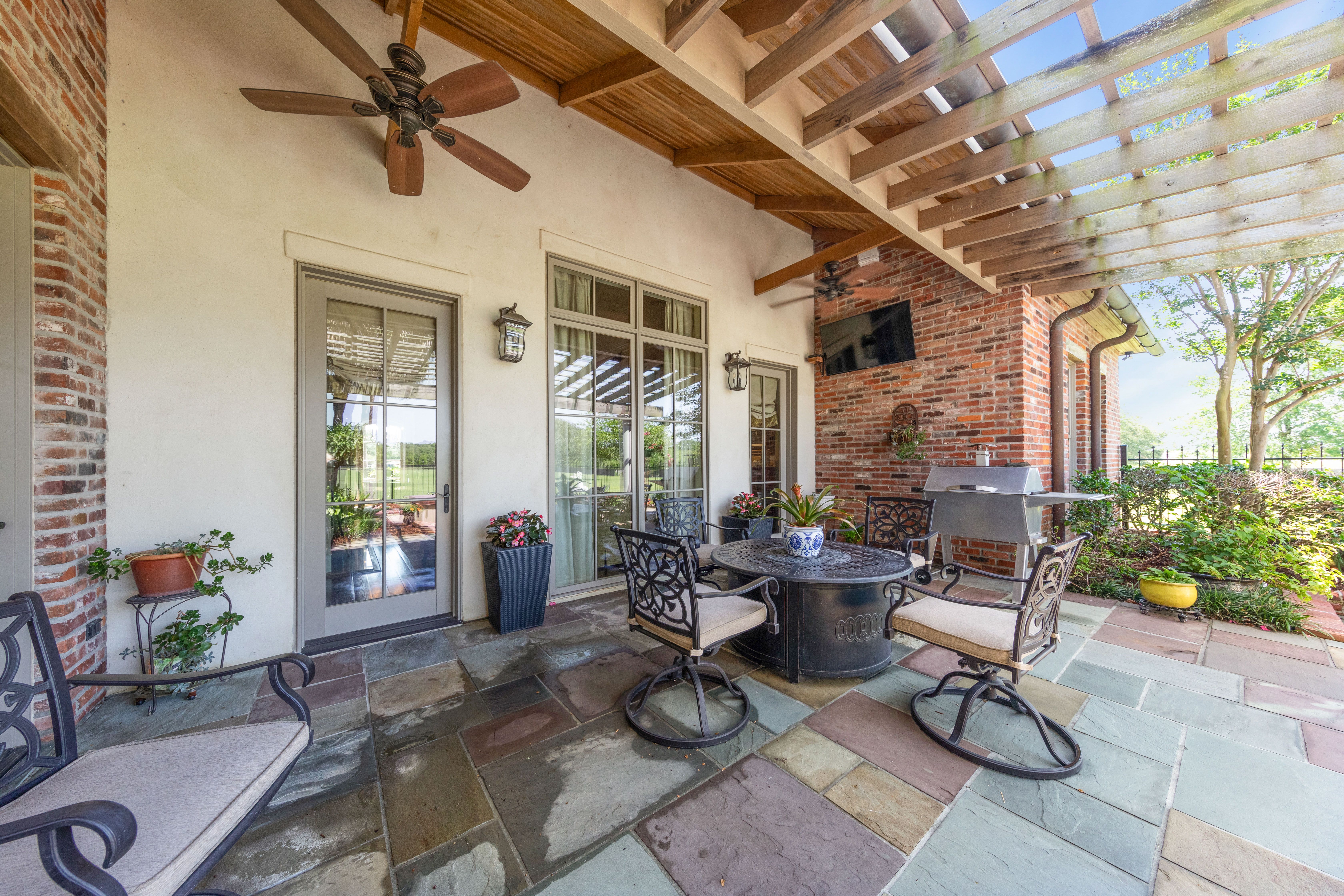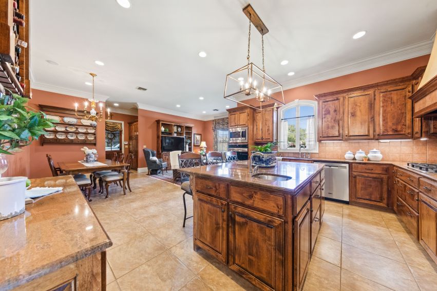 Every detail of this custom Country French home tells a story of care—of daily life made richer by quality craftsmanship and timeless finishes. Morning light pours into the kitchen where memories are made around the island and breakfast nook. Afternoons stretch across the wide patio, the open workshop, and the peaceful pond’s edge. Evenings invite you to gather beneath the pergola, unwind in the hot tub, or watch the sunset across your private backyard retreat.