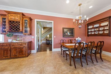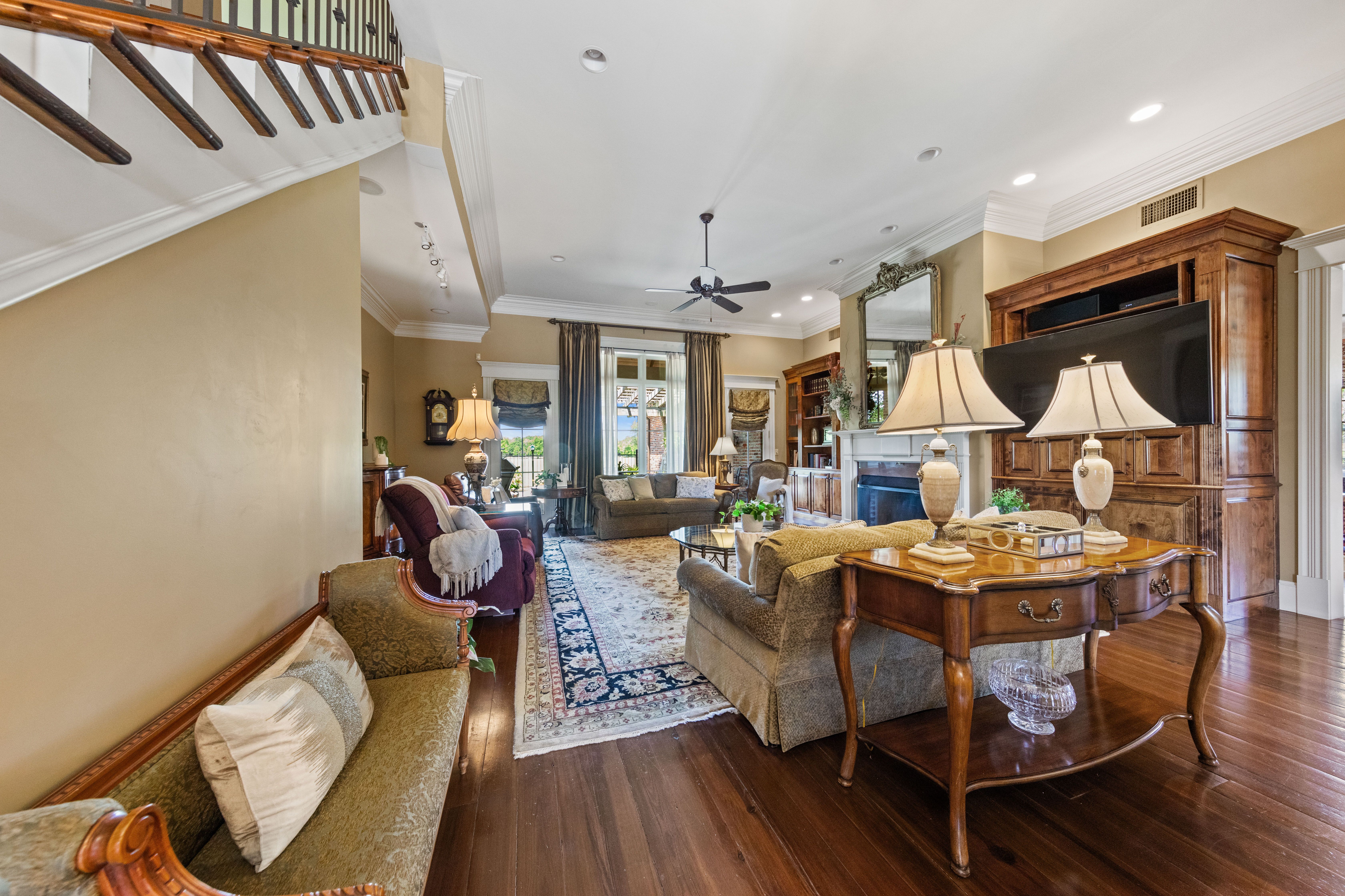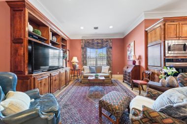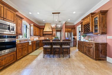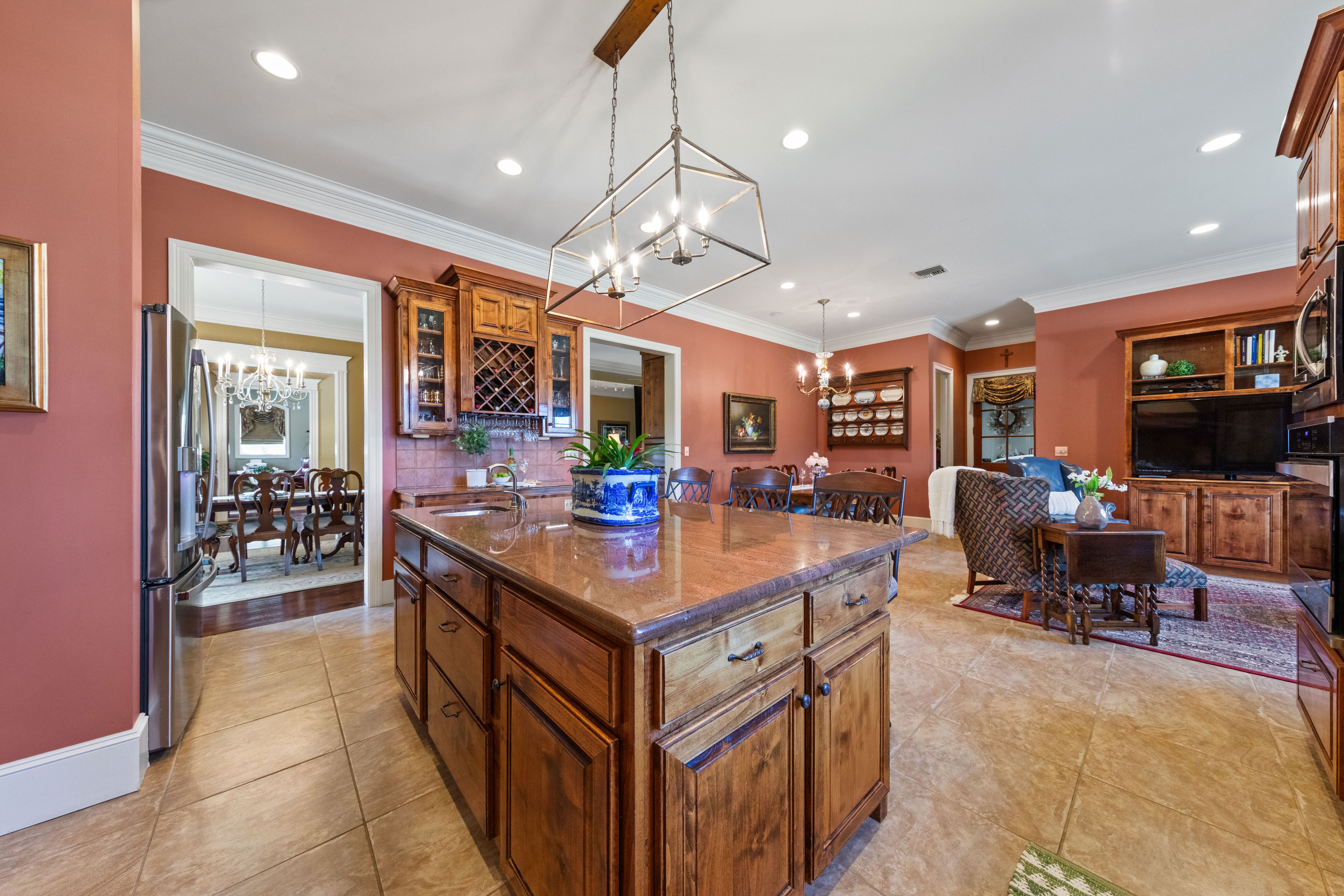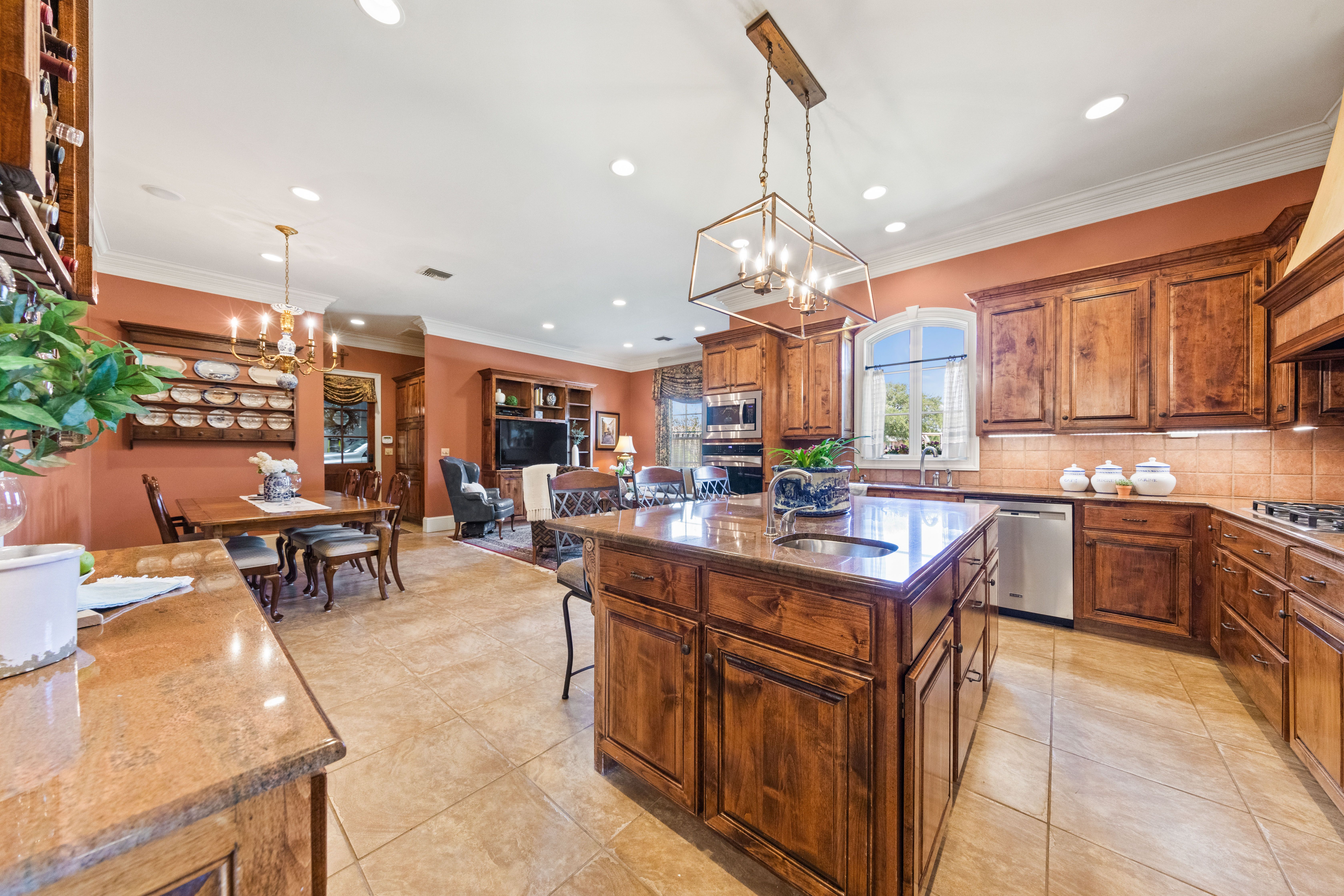 This stunning kitchen blends timeless design with everyday functionality. Rich wood cabinetry, granite countertops, and stainless steel appliances set a refined tone, while a large eat-in island and walk-in pantry provide ideal prep and gathering space. The adjacent breakfast nook and cozy seating area extend the heart of the kitchen, offering a warm, light-filled spot to unwind or connect over coffee. Whether hosting a crowd or preparing a quiet meal, this space brings together charm, flow, and thoughtful detail.