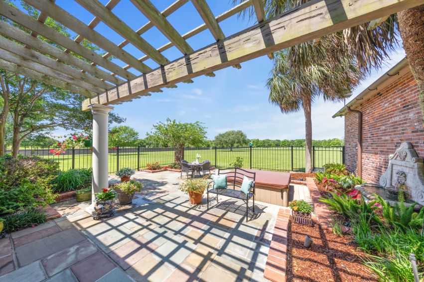 Step into an outdoor oasis designed for both relaxation and entertaining. The slate patio, framed by a charming pergola and lush landscaping, offers a peaceful retreat surrounded by vibrant blooms and mature palms. Enjoy dining, lounging, and grilling al fresco...or unwind in the spa, while taking in sweeping views of the expansive backyard and tranquil pond